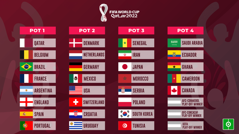 . The Group Stage draw takes place on 1st April 2022 where 32 teams will be divided into 8. The 2022 World Cup draw takes place on Friday with plenty of important international matches scheduled for this week as countries continue to battle it out for a place in QatarCristiano Ronaldo. One team from each of the.